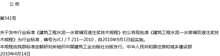 建筑工程水泥—水玻璃双液注浆技术规程收藏