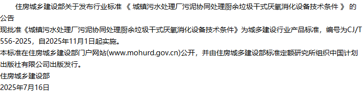 城镇污水处理厂污泥协同处理厨余垃圾干式厌氧消化设备技术条件收藏