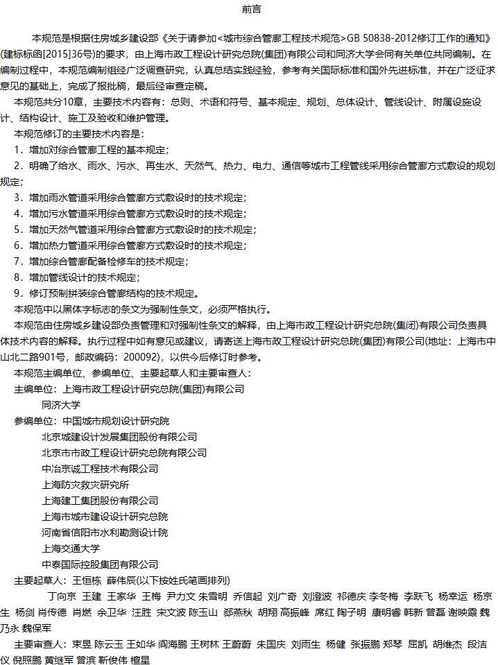 城市综合管廊工程技术规范收藏