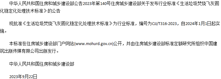 生活垃圾焚烧飞灰固化稳定化处理技术标准收藏