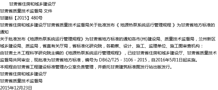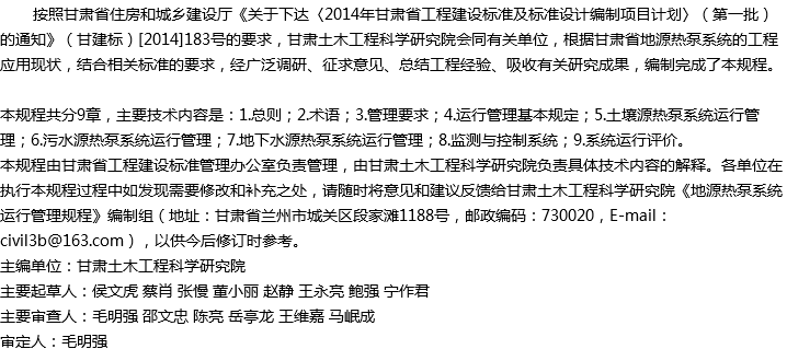 当前位置:首页 > 标准规范 > 地源热泵系统运行管理规程 <返回