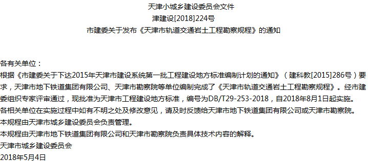 天津市轨道交通岩土工程勘察规程收藏