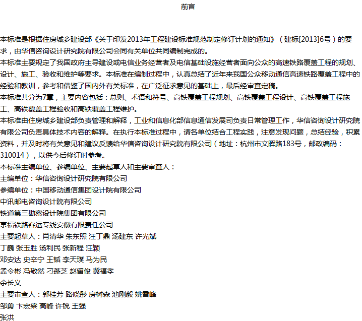 公众移动通信高速铁路覆盖工程技术标准收藏