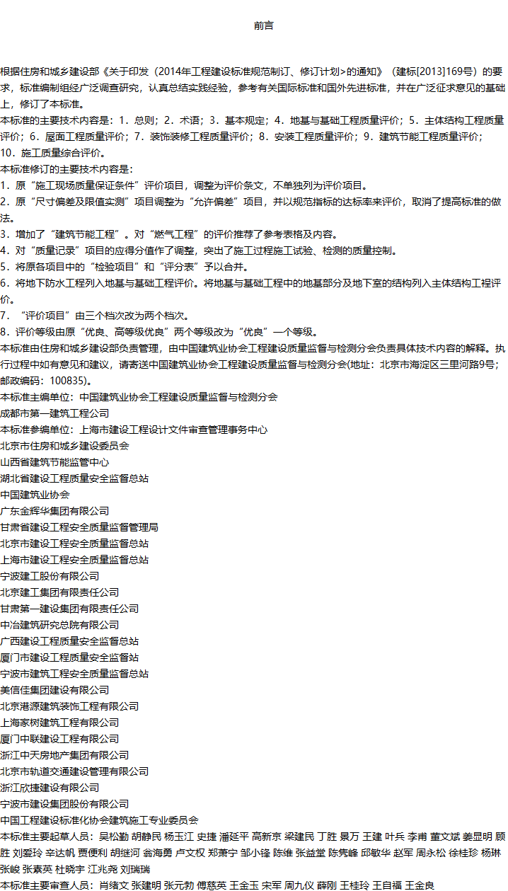 建筑工程施工质量评价标准收藏