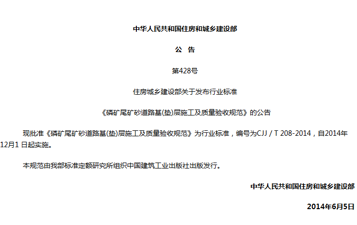 磷矿尾矿砂道路基(垫)层施工及质量验收规范收藏
