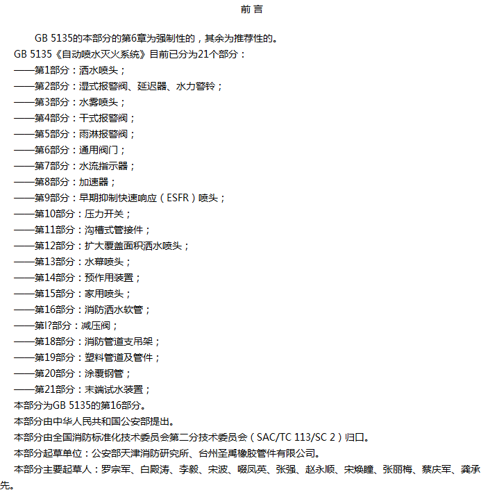 自动喷水灭火系统 第16部分:消防洒水软管收藏