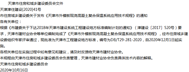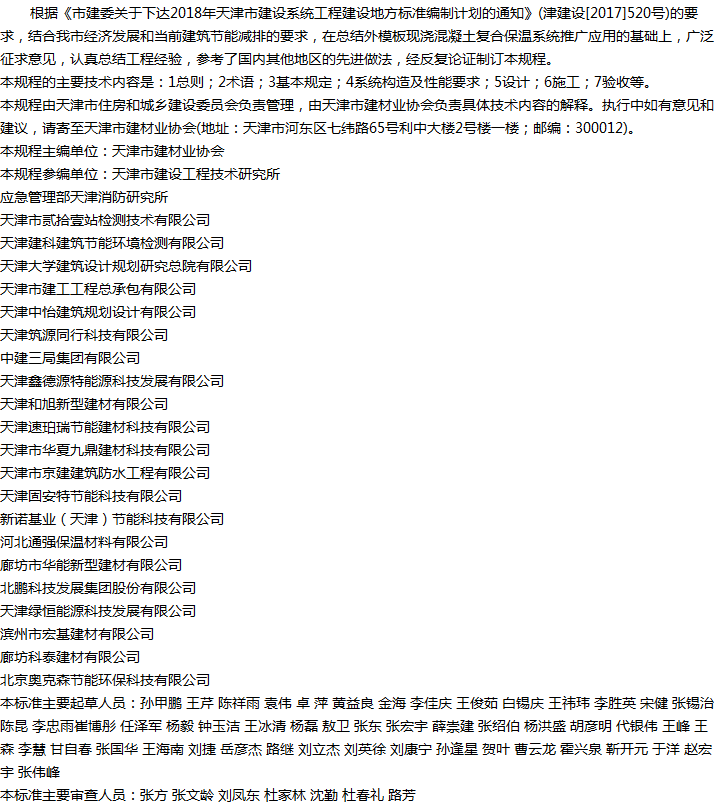 天津市外模板现浇混凝土复合保温系统应用技术规程收藏