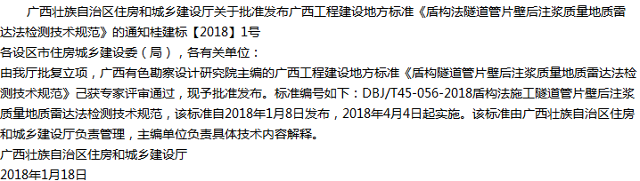 盾构法隧道管片壁后注浆质量地质雷达法检测技术规范收藏