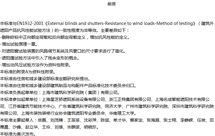 建筑外遮阳产品抗风性能试验方法收藏
