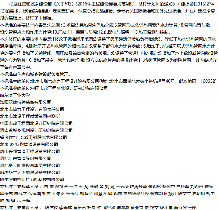 城镇供热管网设计标准收藏