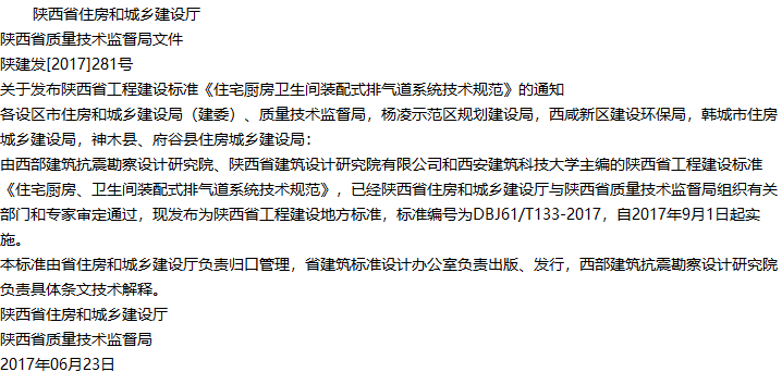 住宅厨房、卫生间装配式排气道系统技术规范收藏