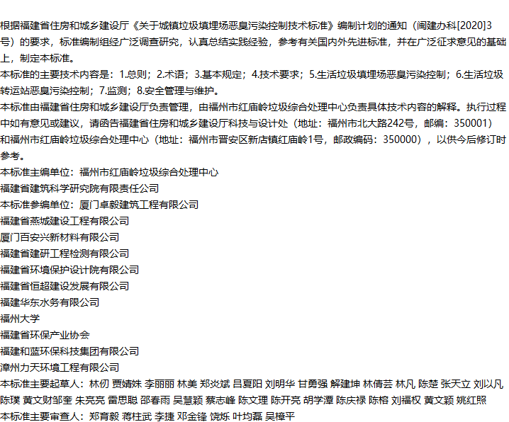 城镇垃圾填埋场恶臭污染控制技术标准收藏