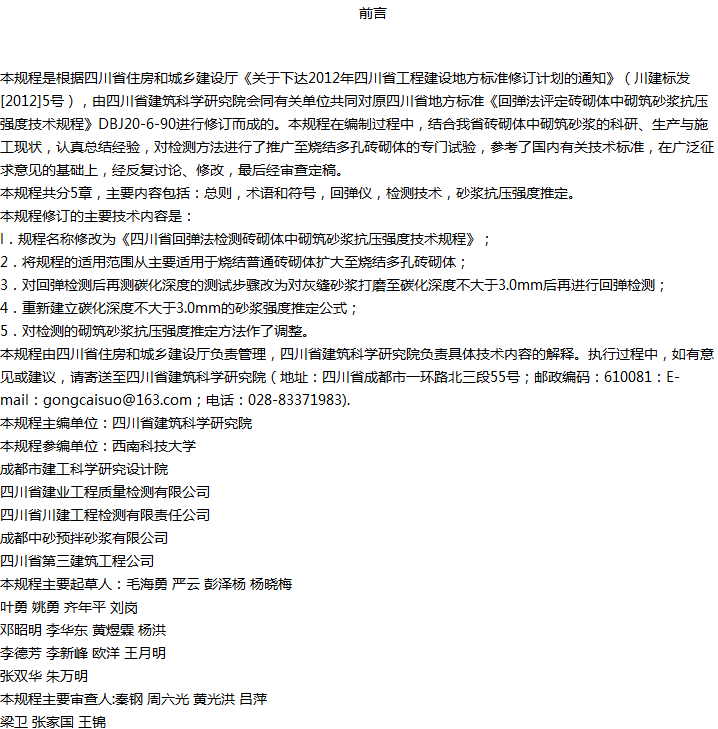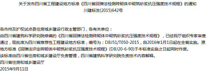 四川省回弹法检测砖砌体中砌筑砂浆抗压强度技术规程收藏