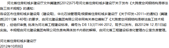 大跨度空间钢结构滑移法施工技术规程收藏