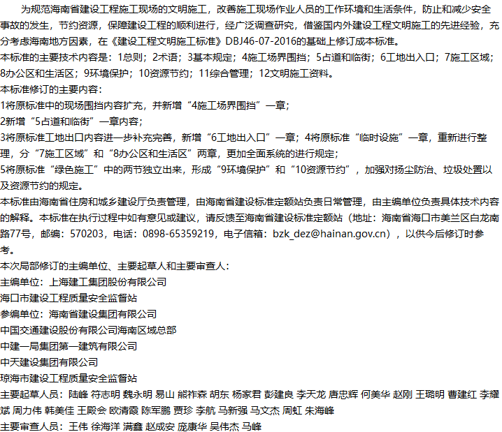 当前位置:首页 > 标准规范 > 海南省建设工程文明施工标准 <返回