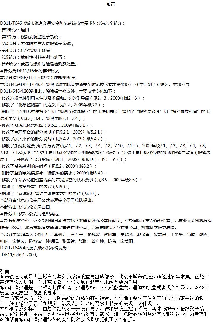 城市轨道交通安全防范系统技术要求第4部分:化学监测子系统收藏