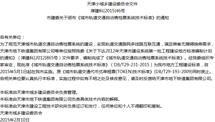 城市轨道交通自动售检票系统技术标准收藏