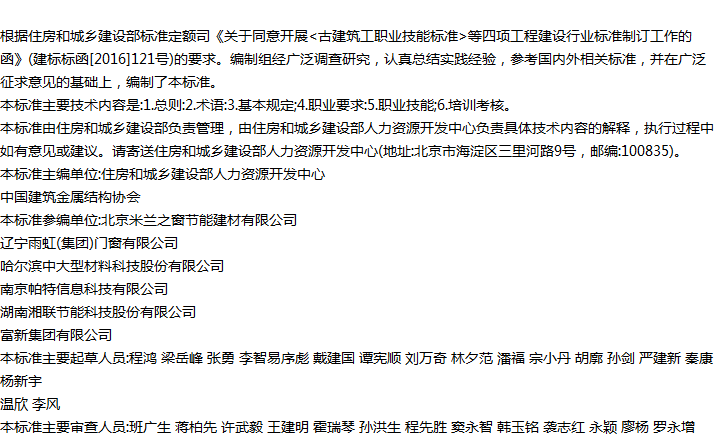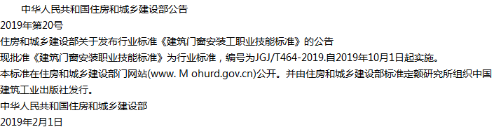 建筑门窗安装工职业技能标准收藏