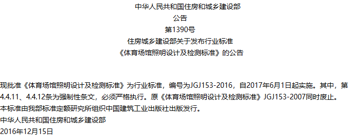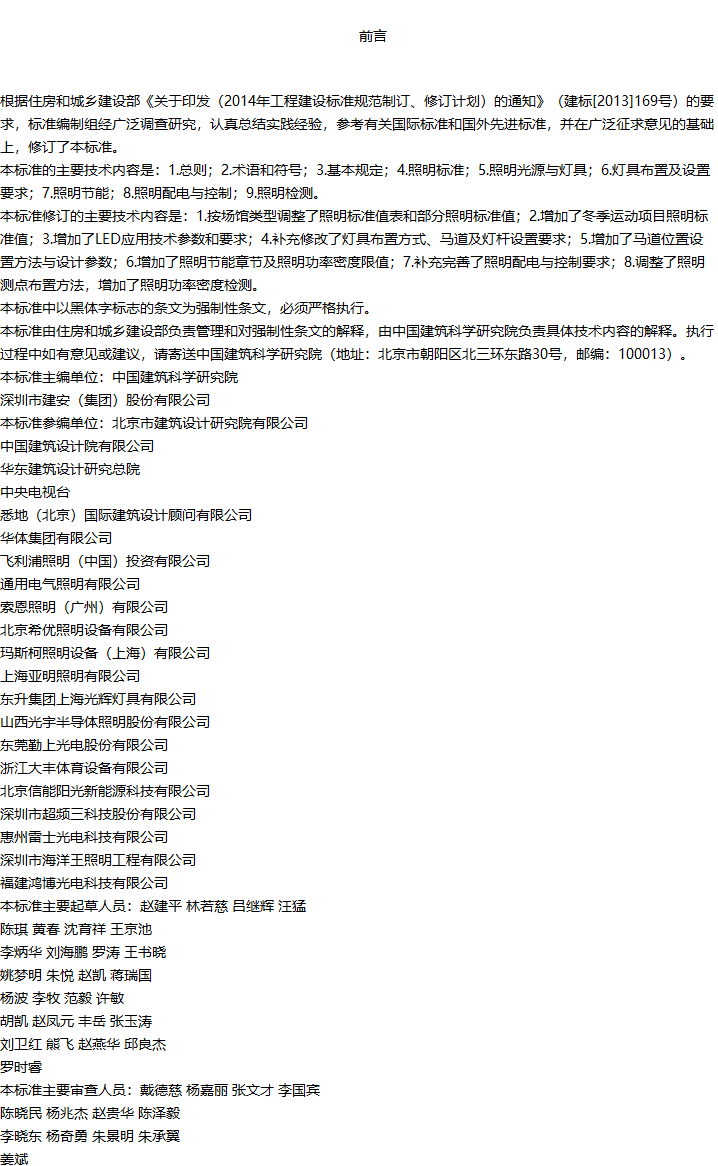 体育场馆照明设计及检测标准收藏