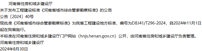 河南省城市综合管廊勘察标准收藏