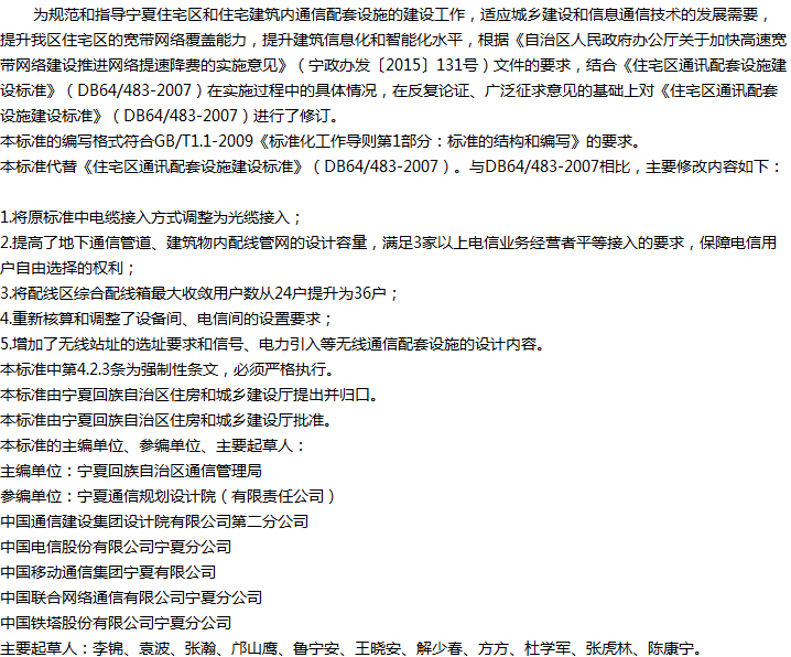 住宅区通信配套设施建设标准收藏