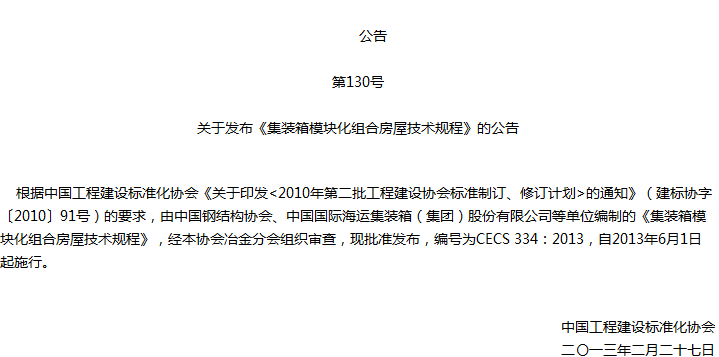 集装箱模块化组合房屋技术规程收藏