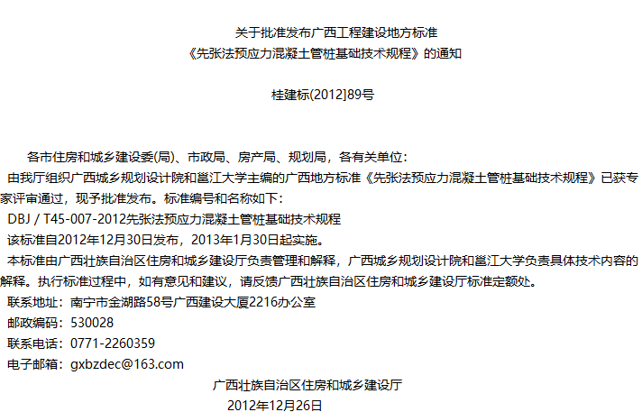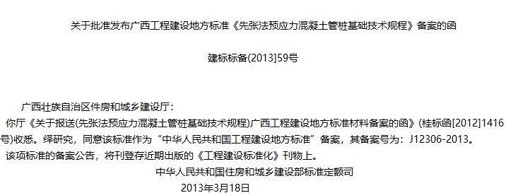 广西壮族自治区 先张法预应力混凝土管桩基础技术规程收藏