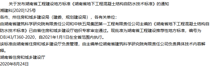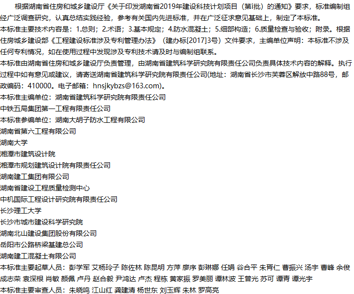 湖南省地下工程混凝土结构自防水技术标准收藏