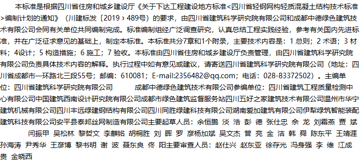四川省轻钢网构轻质混凝土结构技术标准收藏