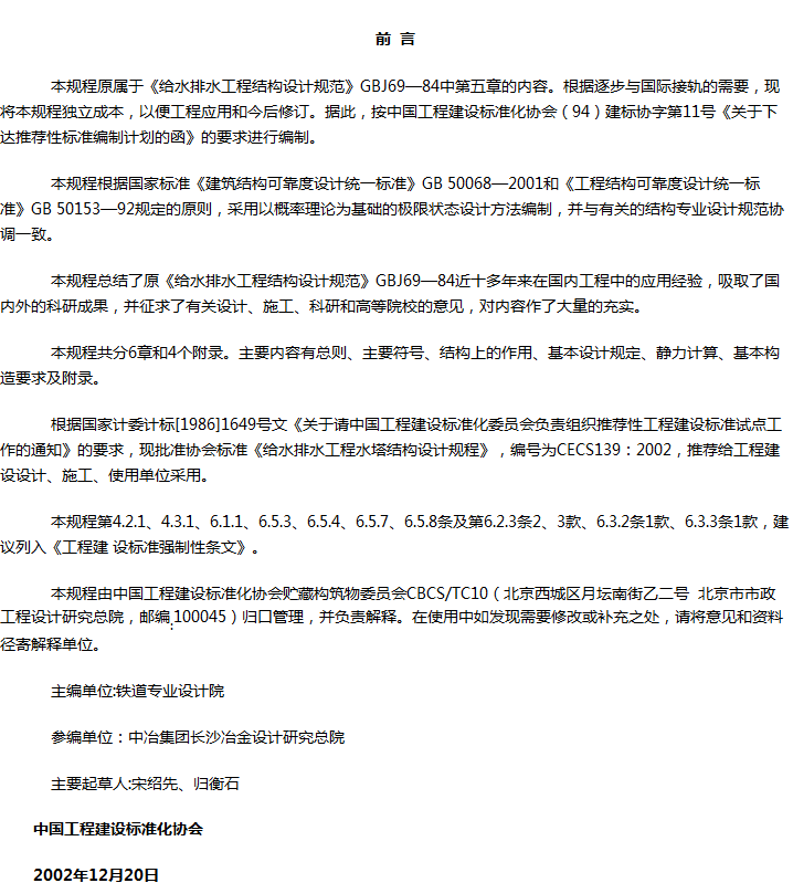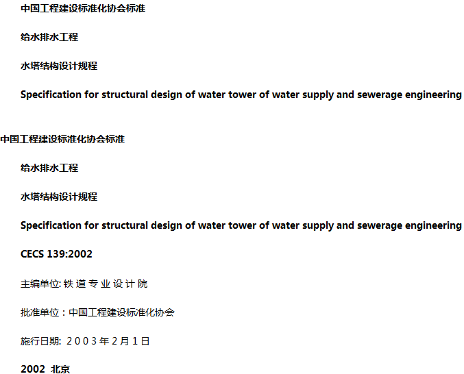 给水排水工程水塔结构设计规程收藏