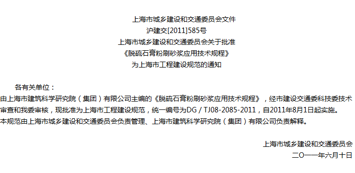 脱硫石膏粉刷砂浆应用技术规程收藏