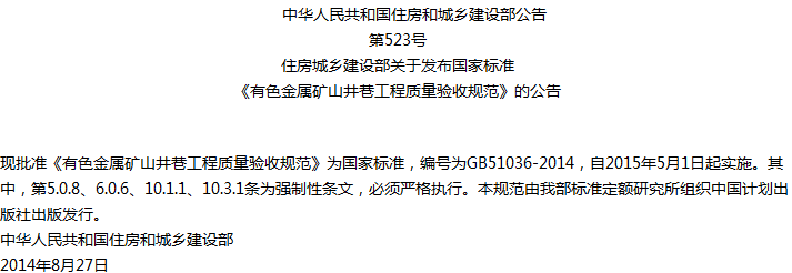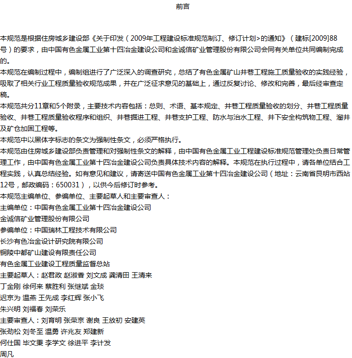 有色金属矿山井巷工程质量验收规范收藏