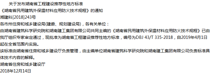 湖南省民用建筑外保温材料应用防火技术规程收藏