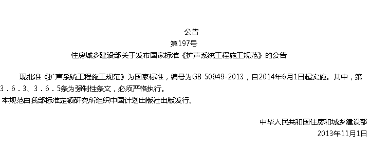 扩声系统工程施工规范收藏