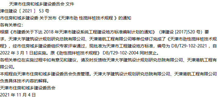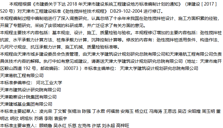 天津市劲性搅拌桩技术规程收藏
