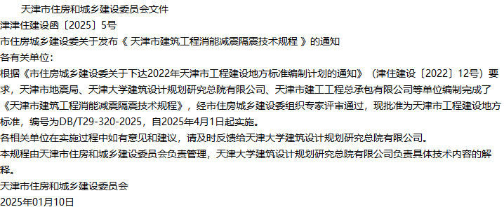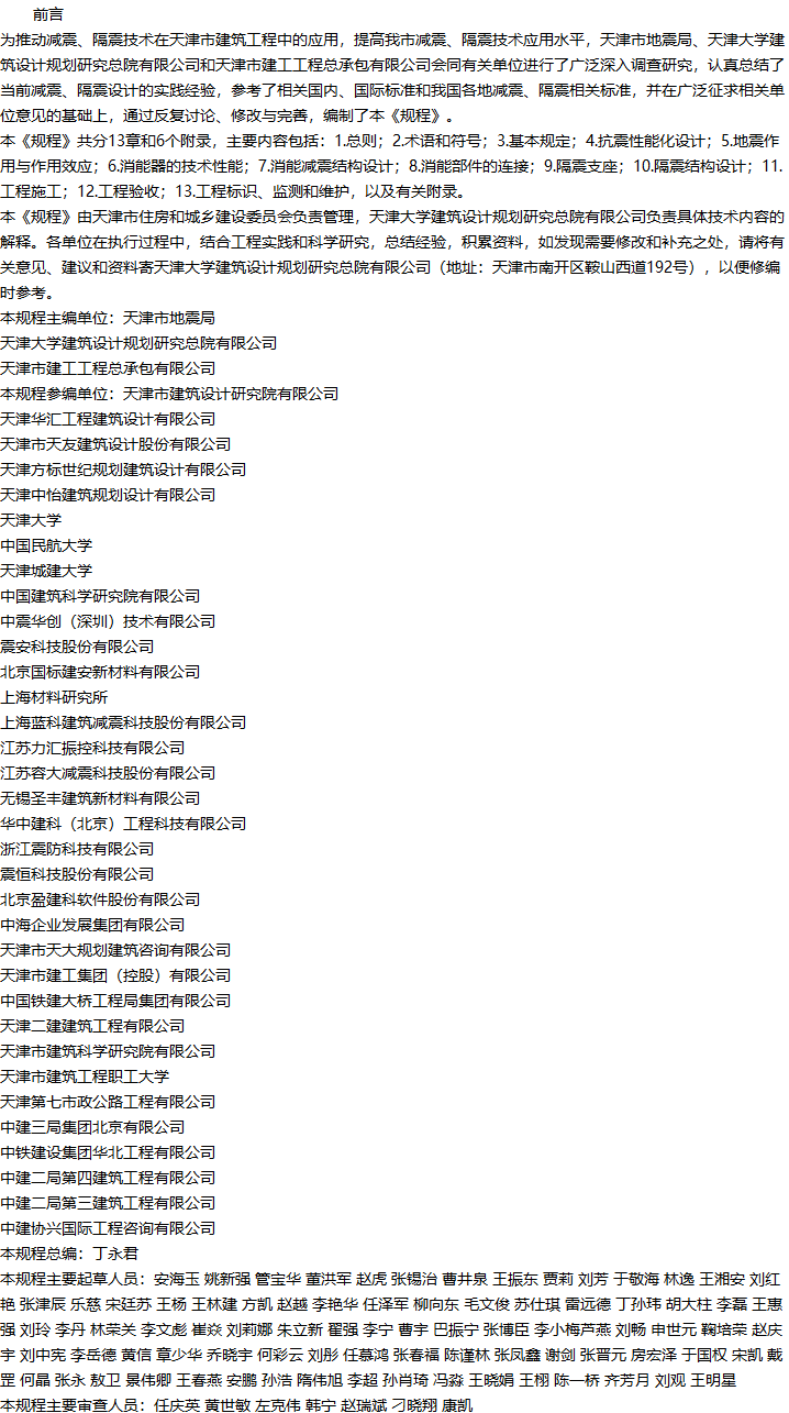 天津市建筑工程消能减震隔震技术规程收藏