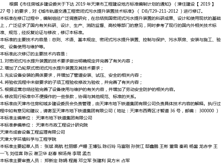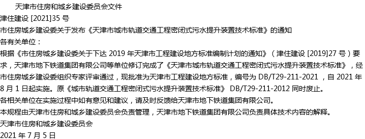 天津市城市轨道交通工程密闭式污水提升装置技术标准收藏