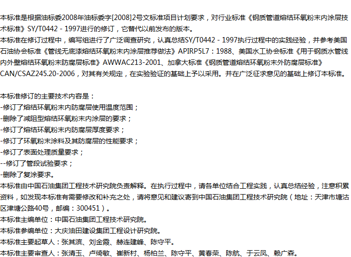 钢质管道熔结环氧粉末内防腐层技术标准收藏