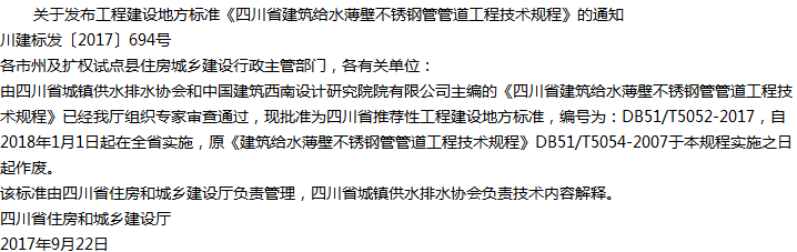 四川省建筑给水薄壁不锈钢管管道工程技术规程收藏