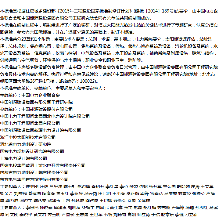 塔式太阳能光热发电站设计标准收藏