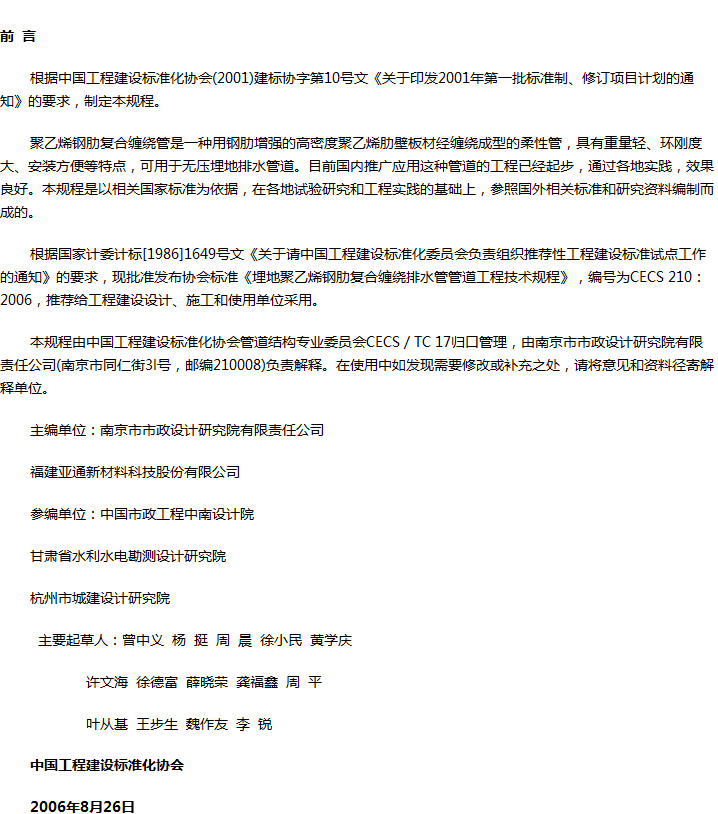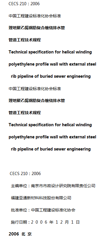 埋地聚乙烯钢肋复合缠绕排水管管道工程技术规程收藏