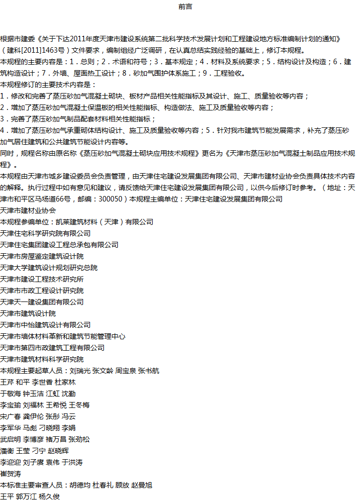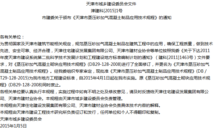 天津市蒸压砂加气混凝土制品应用技术规程收藏