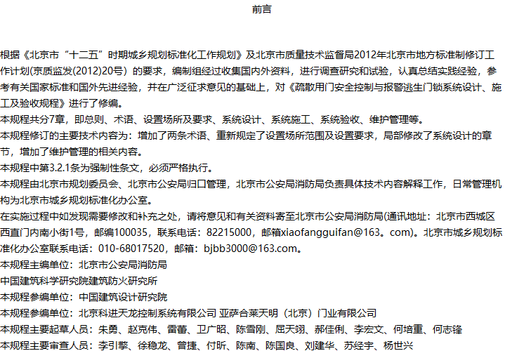 疏散用门安全控制与报警逃生门锁系统设计、施工及验收规程收藏