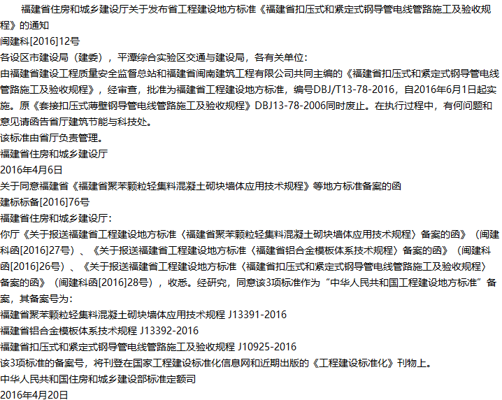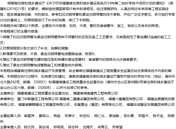 福建省扣压式和紧定式钢导管电线管路施工及验收规程收藏