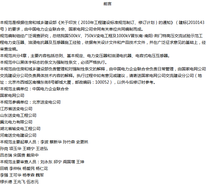 1000kV电力变压器、油浸电抗器、互感器施工及验收规范收藏