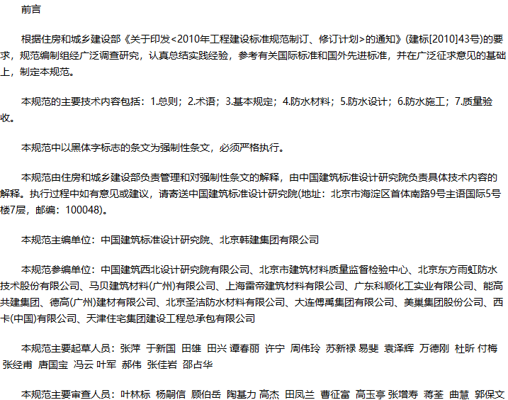 住宅室内防水工程技术规范收藏