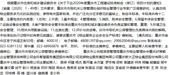 当前位置:首页 > 标准规范 > 物业服务企业安全生产标准 <返回