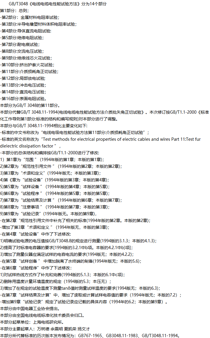 电线电缆电性能试验方法第11部分:介质损耗角正切试验收藏
