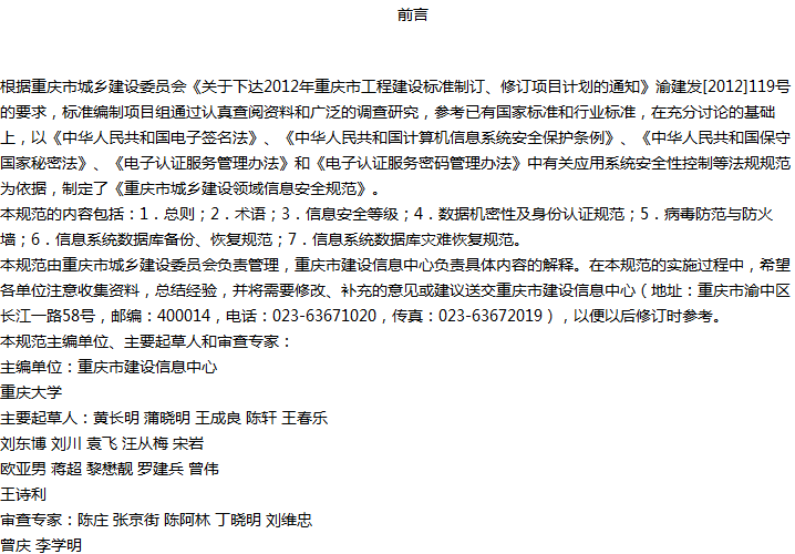 当前位置:首页 > 标准规范 > 重庆市城乡建设领域信息安全规范 <返回