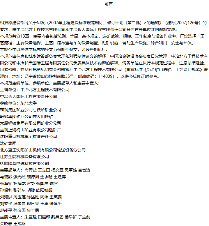 冶金矿山选矿厂工艺设计规范收藏